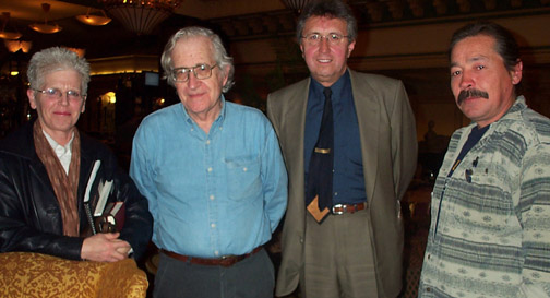 Left to right: Lyn Crompton, Noam Chomsky, Terry LaLiberte, John Graham